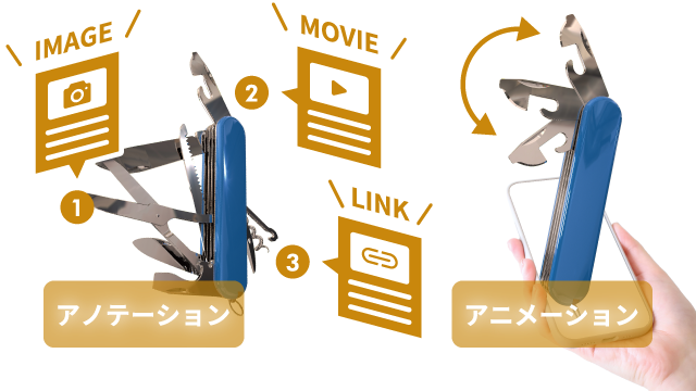 instruction」は、WebGL技術を用いて、製品を、あらゆる方向からインタラクティブに確認することができるだけでなく、見せたいポイントに、URLリンクや静止画・動画を埋め込んだり、アニメーションをつけることが可能です。